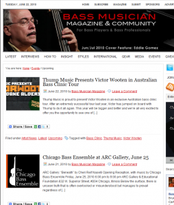 I’m working to make better use of the resources I have, the resources that just about anybody has these days: Twitter, Facebook, MySpace, WordPress, and an e-mail list. The folks at Bass Musician Magazine received the latest e-mail and have posted it on their “Events” page. I have to say I was pleased to find myself sharing a page with Victor Wooten and Eddie Gomez (and just off-screen the NAMM show).